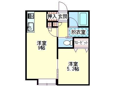 | 詳細間取 | 1LDK (洋5.3帖×1、LDK9帖) | ||